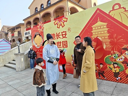 為營(yíng)造濃厚新春氛圍,景區以丙午年節日底蘊為依托,在主要入口、核心服務(wù)節點(diǎn)及互動(dòng)體驗區域錯落懸掛紅色燈籠,搖曳間盡顯年味綿長(cháng)。同時(shí)在得寶門(mén)、國內展園核心區域布置特色美陳打卡裝置,將傳統年俗元素與景區自然景致巧妙融合,讓每一位入園游客都能沉浸式感受新春祥和氣息。 深度挖掘唐詩(shī)西安城市IP內涵,緊扣民生文化需求,借鑒十五運開(kāi)幕式特色傳統表演形式,在得寶門(mén)、國內展園區域安全有序開(kāi)展舞龍舞獅表演及巡游活動(dòng),鼓樂(lè )鏗鏘、龍騰獅躍,再現中華傳統民俗魅力。此外,景區在國內園游覽動(dòng)線(xiàn)沿途設置詩(shī)詞飛花令等6處互動(dòng)體驗點(diǎn)位,融合唐詩(shī)文化、古風(fēng)運動(dòng)、鳥(niǎo)類(lèi)保護主題,讓游客在休閑中觸摸中華文化脈絡(luò ),感悟傳統文化的深厚底蘊。